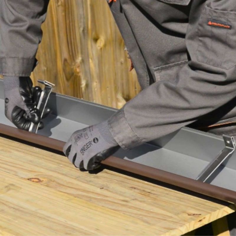 L’installation est rapide et ne nécessite pas d’outillage spécifique. Il suffit de percer à travers la lumière du crochet et de la gouttière pour la fixer contre la planche de rive.