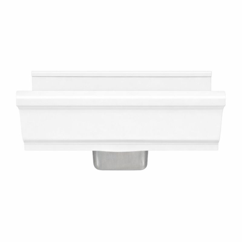 La naissance frontale aluminium Blanc RAL 9010 pour gouttière aluminium G300 permet de raccorder votre gouttière à une descente d’eau pluviale positionnée directement sous la gouttière, sur le même mur.