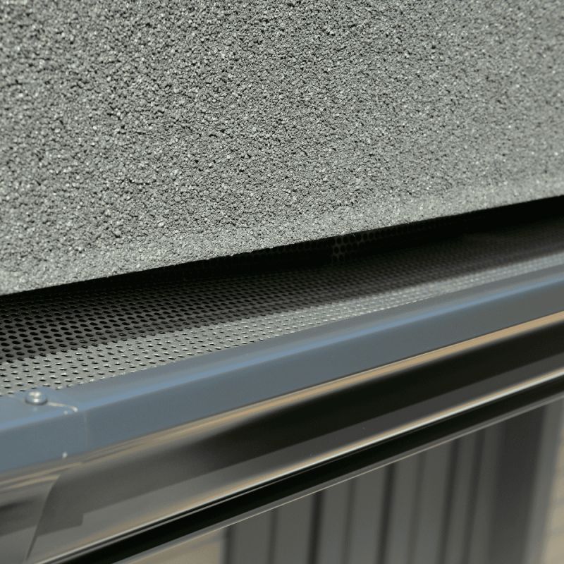 Le pare-feuille aluminium se positionne directement sur la gouttière aluminium G300. Il recouvre l’ouverture de la gouttière et empêche les feuilles et débris d’y pénétrer.